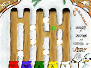 : Vous devez aider les pièces à rejoindre le sac correspondant. Bloquez les trous avec une balle de neige en cliquant dessus.
