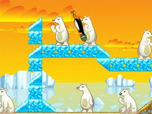 : Cliquez ou appuyez sur ESPACE au bon moment afin d’envoyer le minimum requis de pingouin pour achever les niveaux.